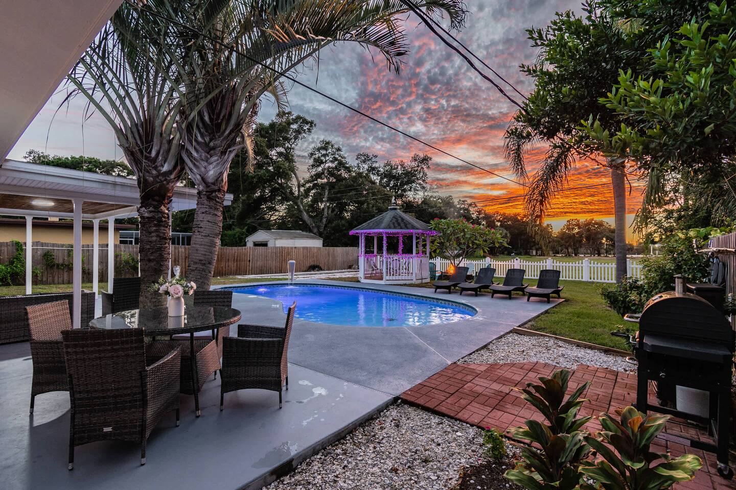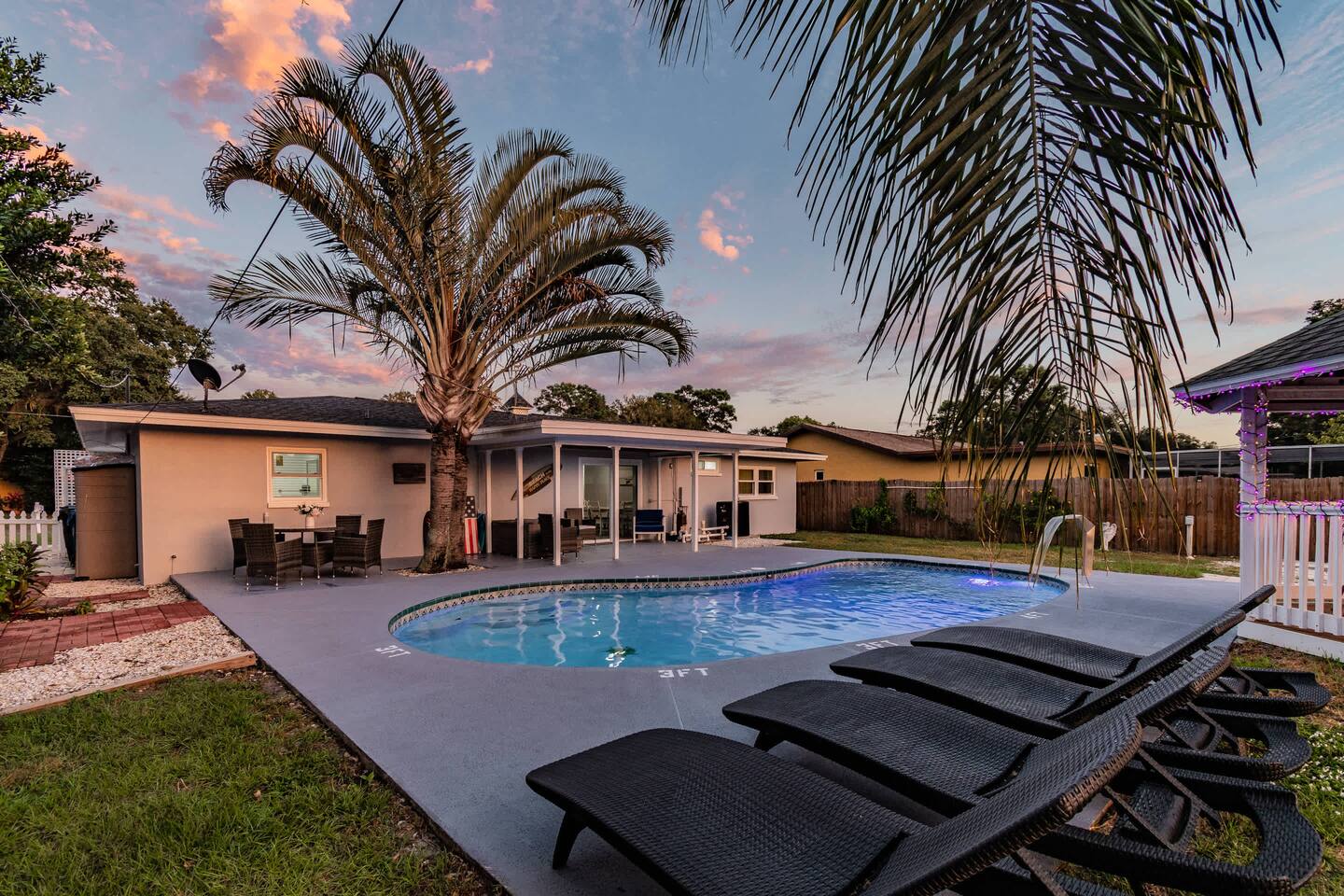 Welcome to Your Tropical Oasis! This renovated 3BR/3BA retreat is perfect for families, groups, and pet lovers. Just 5 minutes to Indian Rocks Beach and 13 minutes to Clearwater Beach, you’ll enjoy the best of both worlds — prime location + resort-style amenities. Relax by the heated pool, gather at the firepit, or unwind under the shaded gazebo. Whether it’s a family trip, bachelorette getaway, or group vacation, this home is designed for making memories.